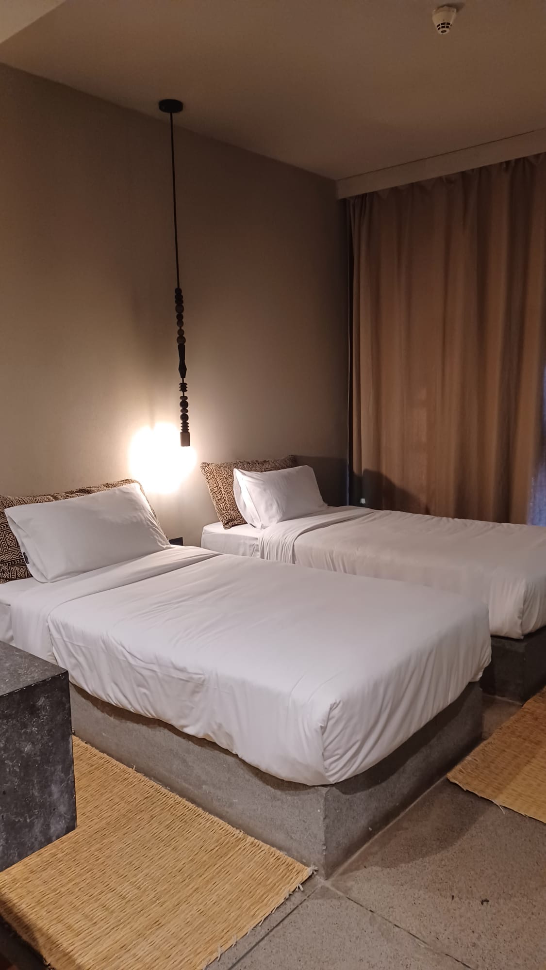 “ Leuke accommodatie in BOHO stijl aan een lagune, waar je verwelkomt wordt met een gratis drankje van het huis. Mooi opgezet complex, niet al te groot, waar het personeel vriendelijk en attent is. Hier ontbreekt het je aan niets, alles kan niets moet mentaliteit. De kamers zijn schoon en compact, jammer dat er naast de twin beds geen mogelijkheid is om ergens te zitten, hierdoor is tv kijken alleen mogelijk zittend op bed. Gelukkig zijn er voldoende kussens die dit ook comfortabel maken. De douche is heerlijk, voorzien van een goede afzuiging waardoor deze in een mum van tijd weer droog is, het toilet is in dezelfde ruimte als de douche. De wastafel met grote spiegel bevindt zich in het slaapgedeelte, dit geeft bij het willen wassen weinig privacy. Er staat een klein koelkastje op de kamer met voldoende ruimte om ook wat eigen spulletjes in op te bergen. De open kledingkast heeft zowel planken als hangers, tevens voorzien van een elektronisch kluisje. Er is een föhn aanwezig echter deze is voorzien van een gedraaid (telefoon van vroeger) snoer die weinig ruimte verschaft, je moet hier hard aan trekken om bij het hoofdhaar te komen, dit vergt kracht en geeft je een vermoeide arm. Helaas zit er geen mondstuk op de föhn en is deze erg heet, ook de coolshot mist. Het is wel wat gehorig, geluid vanaf de gang of buiten. Deze accommodatie is te boeken op basis van logies met ontbijt of logies met half pension. Wij hadden alleen ontbijt erbij en dit is elke ochtend het zelfde maar zeer uitgebreid, voor ieder wat wils. De eieren worden bereid zoals je dat wenst, gebakken, gepocheerd, omelet, scrambled alles is mogelijk. American pancakes, waren heerlijk, evenals de verse sappen. Half pension is niet nodig omdat je via het pad langs het zwembad en de SPA binnen 30 meter in de hoofdstraat van “Downtown” El Gouna staat, hier is de keuze reuze v.w.b. uit eten gaan, Italiaans, Mexicaans, Afrikaans, Grieks, Zwitsers, Thais, en nog veel meer. Wandelen in El Gouna is veilig, ook ’s avonds. De tuktuks toeteren als ze je zien lopen maar zijn niet opdringerig, een enkele rit kost 50 EGP, wat gelijk staat aan +/- €1,=. Je kunt ook lopend (ca. 20 minuten) naar de Marina’s, waar grote jachten liggen, de moeite waard om er eens een kijkje te nemen. Aan de overkant van Cook's Club kan je via de golfbaan naar de “Tower” lopen die gratis is te bezoeken en je een prachtig uitzicht biedt over de golfclub en de omgeving.