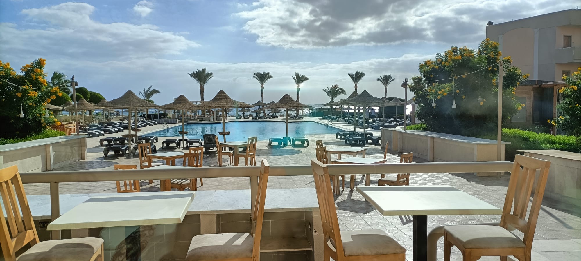 “ oud hotel ligging is mooi. Hotelkamer simpel douche veel slecht herstel werkzaamheden lekkende kranen. Matras van bed was erg slecht men zou dit verhelpen maar niet meegemaakt Oude herrie makende airco maar deed zijn werk. Eten ondermaats heel beperkt aanbod en bijna altijd koud wel veel salades. Personeel wel vriendelijk “