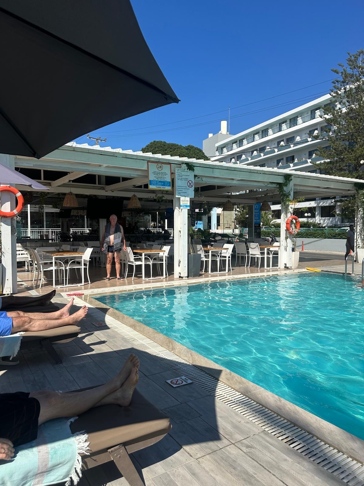 “ Prima appartement. Keuken wel basic. Bed lag prima maar bedbank en kussens waren hard. Airco aanwezig en mooie badkamer. Ontbijt was erg Engels als je daar van houd is het prima maar anders zou ik het niet erbij boeken. Zwembad was erg fijn en niet koud. Osiris ligt centraal bij strand / restaurants en winkelstraat met veel boetiekjes Genoeg keuzes kwa restaurants met heerlijk eten. “
