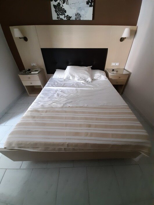 “ Rose club ziet er van buiten fantastisch uit netjes verzorgd terras met zwembad leuke bar.Tweekamer app waar wij verbleven is klein met een aparte slaapkamer met een te klein tweepersoons bed er staat nog een bed in de huiskamer slechte matrassen heel de week niet geslapen. bad kamer veel te klein geen ontluchting en een niet passende toiletbril met het gevolg de deksel op je rug. de studio's/appartementen hebben wel een keukenblok maar geen gootsteen. afwassen in een bak met water uit de badkamer enz enz “