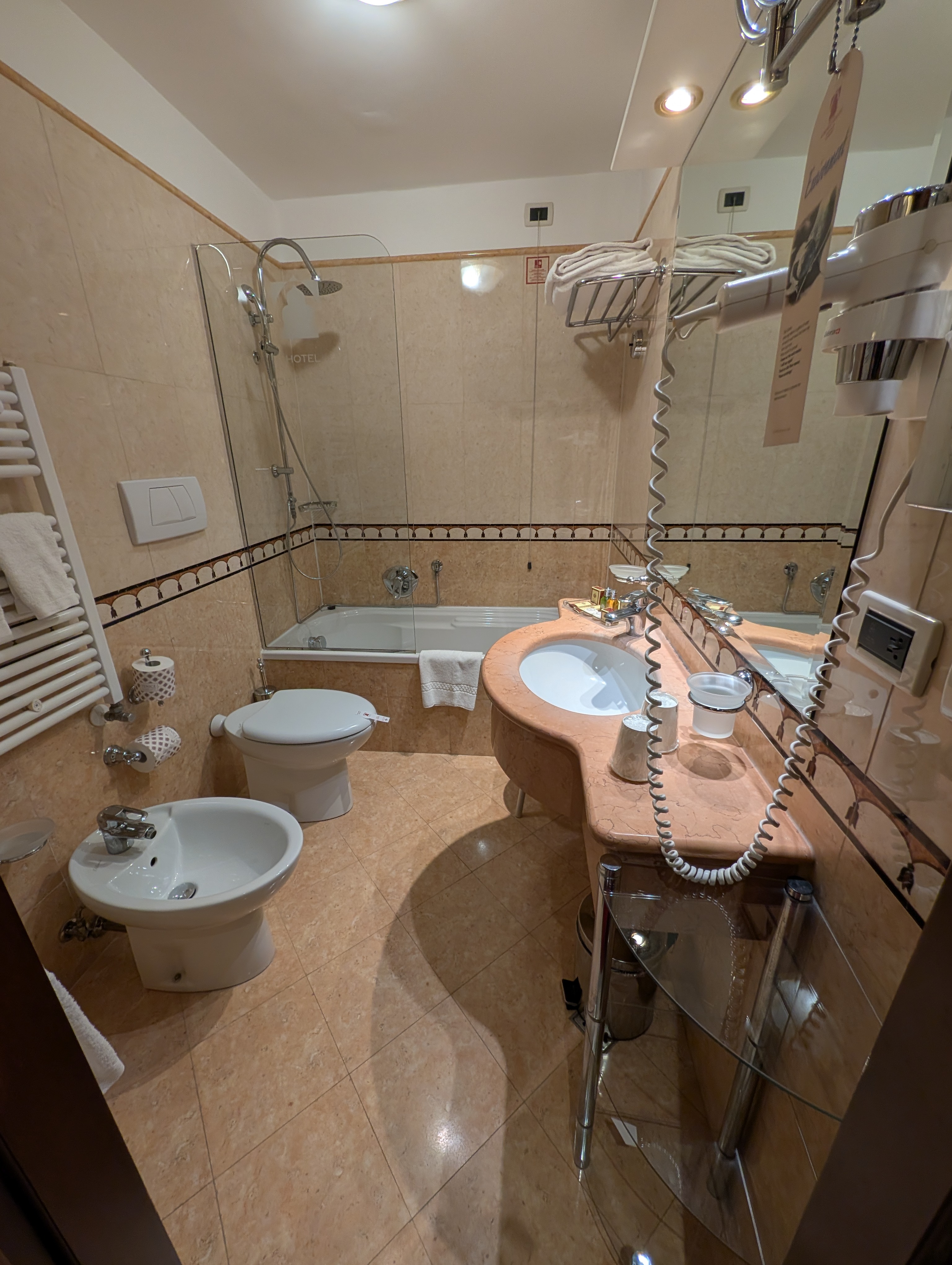 “ Het hotel is rustig gelegen in Cannaregio. Vaporetto is 5 minuten lopen en met 20 minuten ben je in de stad. Zeer vriendelijk en attent personeel. Uitstekend ontbijt. Prima verzorgde en schone kamers. Bedden ook uitstekend. Geen inloopdouche, hiervoor moet je in het bad klauteren. Prijzen bar vrij hoog. Elke dag kun je met een door het hotel aangeboden watertaxi naar Murano om een glasblazerij te bezoeken. Interessant en je wordt niet gepusht iets te kopen. Hotel zeer aanbevolen. “
