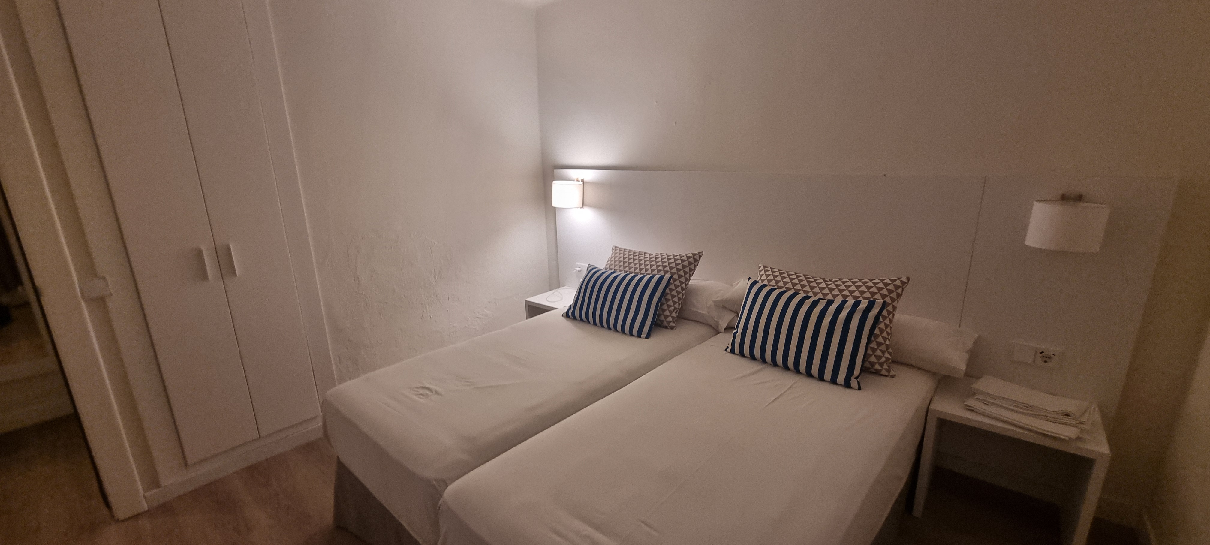 “ Top locatie , top appartement, ik zeg doen . Alles is gerenoveerd, super netjes, 2 aircos , goede koelkast, keramische kookplaat, geen waterkoker dus neem er 1 mee , genoeg kastruimte. Bedbank is beetje hard maar de matrassen van de gewone bedden zijn heerlijk. Water heeft een goede straal met douchen. Schoonmaak komt elke dag dus ook elke dag frisse handdoeken. Om de hoek loop je zo naar het strand of naar het kleine centrum . Supermarkt Eroski heeft alles wat je zoekt . “
