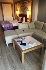 “ We zaten met 4 kinderen en 2 volwassen in een super grote family kamer met een mega terras en uitzicht op zee. Het eten was zeer uitgebreid en elke dag wad er heel erg veel keus in vis,vlees pastas en de vele desserts.. Ze hebben ook een heel leuk kinder buffet en zag voor de allerkleinste nog gepureerd eten liggen.. Keuze uit 3 zwembaden en een waterglijbaan.. en het heerlijke privestrand. Kamers werden elke dag netjes schoongemaakt en minibar dagelijks aangevuld. Top hotel en vriendelijke hardwerkende personeel. Met de dolmusbus die voor het hotel stopt ben je in 20 min in side of in manavgat waar je de watervallen kunt zien. Het hotel ligt langs een meer waar je op de route een klein winkelcentrum hebt. Hotel is zeker een aanrader voor gezinnen wij hebben daar een top vakantie gehad!!! “